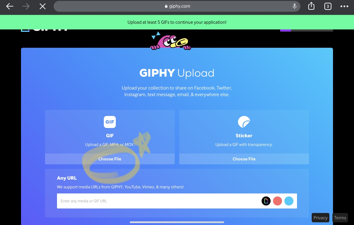 7. 나의 gif(움직이는 스티커) 를 올리기위해 <go upload some Gifs!>를 클릭하고 바로 <choose file >을 눌러주세요 !