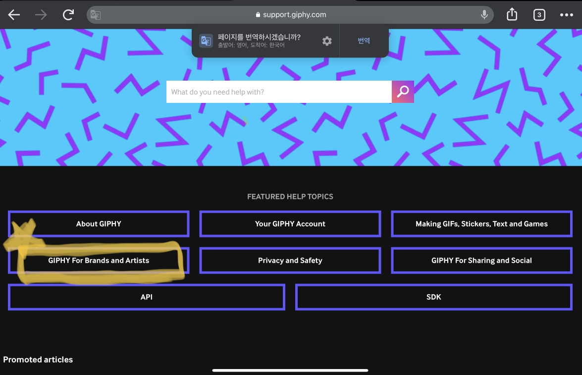 <GIPHY FOR Brands and Artists> 를 클릭해주세요.